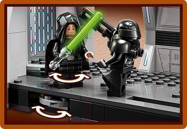 - Une scène dans le croiseur léger impérial – Un ascenseur qui pivote, une plateforme de combat rotative pour Luke Skywalker et une plateforme « de la Force » qui glisse pour repousser les Dark Troopers
