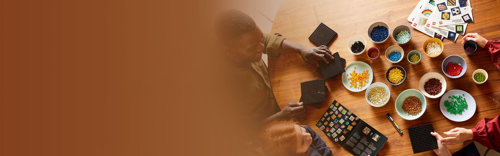 Créer ensemble. Passez de bons moments en famille ou entre amis avec ce set contenant une palette facile à construire pour assortir les tuiles, ainsi que 9 options d’images pour chaque thème : nourriture, motifs, icônes et hobbies. Choisissez des images puis assemblez-les pour former une œuvre d’art, ou créez une image grand format de la figurine LEGO.