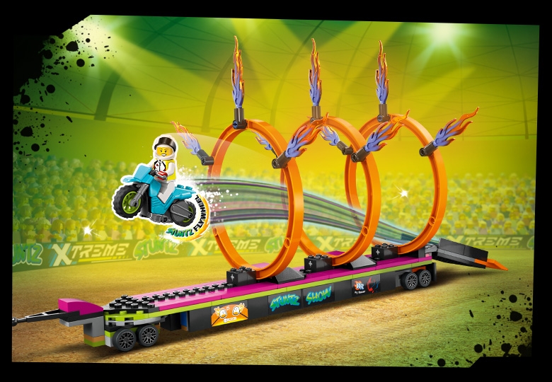 - Action et cascades sans fin – Dressez le décor pour de formidables spectacles et compétitions avec Le défi de cascade : les cercles de feu LEGO City (60357)