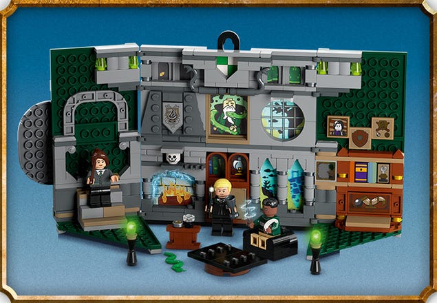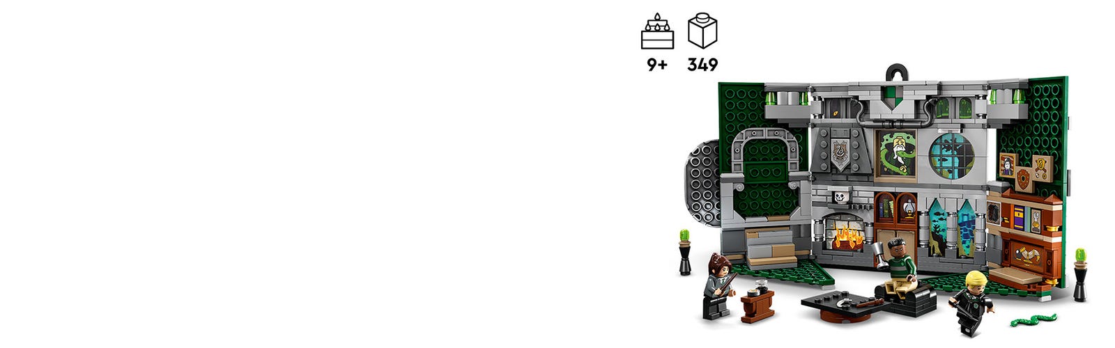 - Le blason de la maison Serpentard LEGO Harry Potter (76410) – Les enfants peuvent afficher leur allégeance envers la maison Serpentard avec ce blason à construire. Suspendez-le ou ouvrez-le pour jouer dans la salle commune détaillée