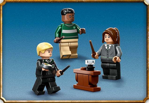 Ce set à emporter partout pour des aventures passionnantes est l’un des 4 blasons des maisons de Poudlard à collectionner. Il inclut la minifigurine de Drago Malefoy et celles de Pansy Parkinson et Blaise Zabini (nouveautés de mars 2023), ainsi que le médaillon de Serpentard.