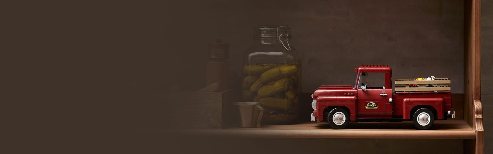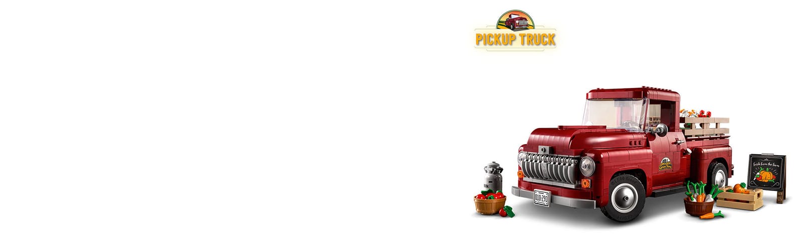 - Construisez la version LEGO d’un pick-up agricole rétro des années 1950. Explorez tous les détails réalistes de ce modèle de collection classique, puis exposez-le pour pouvoir l’admirer.