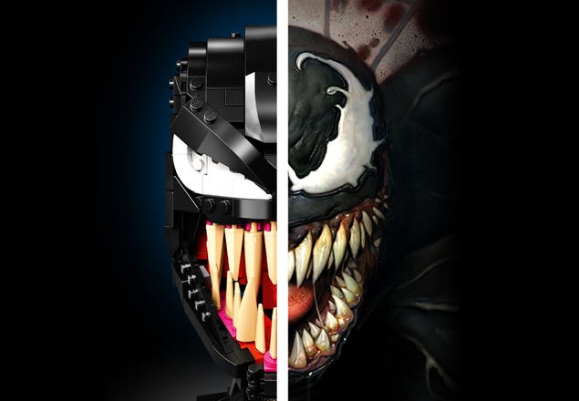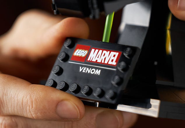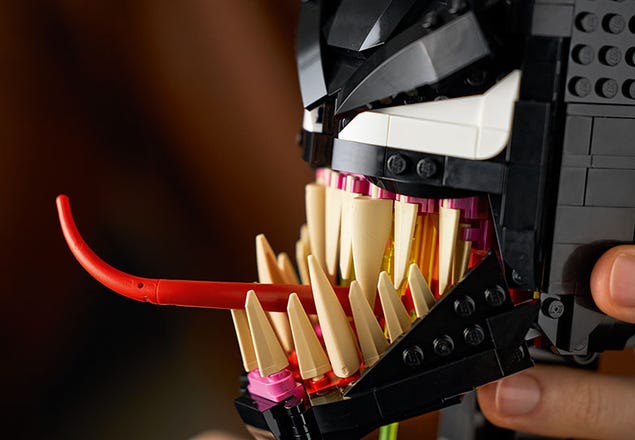 Mettez vos talents de constructeur au défi et recréez les détails uniques et les dents tranchantes d’un super-méchant Marvel avec le set LEGO Marvel Spider-Man Venom (76187).