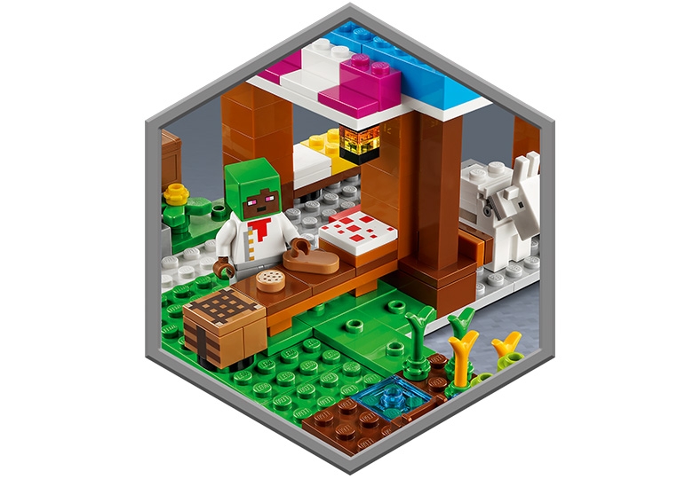 Jeu transformable pour enfants créatifs. Ce set Minecraft déborde d’activités et de possibilités. Les personnages Minecraft incluent un boulanger, un villageois des neiges, une chèvre et un Creeper. La boulangerie animée inclut une pièce meublée servant de cadre aux scènes de la vie domestique. Pour préparer du pain et des biscuits, les enfants doivent réunir les ingrédients. Ils obtiendront du blé en aidant le villageois à le cultiver et du lait en trayant la chèvre, puis exprimeront leur créativité en aidant le boulanger dans la cuisine. Un redoutable Creeper rôde, déterminé à fracasser le coffre contenant un œuf précieux. Les enfants doivent défendre la boulangerie avec une épée en diamant. Après la bataille, ce set modulaire peut être transformé pour inspirer de nouvelles aventures.